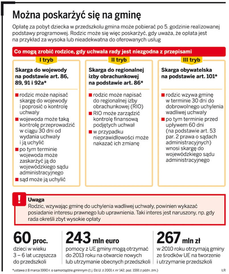 Podkreśla, że powinien też określić maksymalne stawki, jakie mogą pobierać gminy za poszczególne zajęcia. Jedynie w ten sposób gminy mogą uniknąć uchylenia kolejnych uchwał. Z kolei w przypadku tych uchylonych uchwał rodzice domagają się zwrotu niesłusznie pobranych opłat.