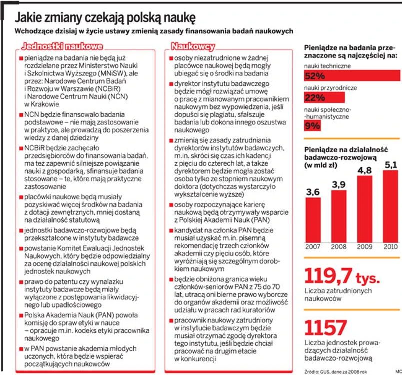 Polska jest jednym z ostatnich krajów, w których minister podejmuje decyzję w sprawie rozdziału środków finansowych na badania naukowe. Zgodnie z nowymi przepisami teraz zajmą się tym dwie instytucje: Narodowe Centrum Badań i Rozwoju (NCBiR) oraz nowo powstałe Narodowe Centrum Nauki (NCN).