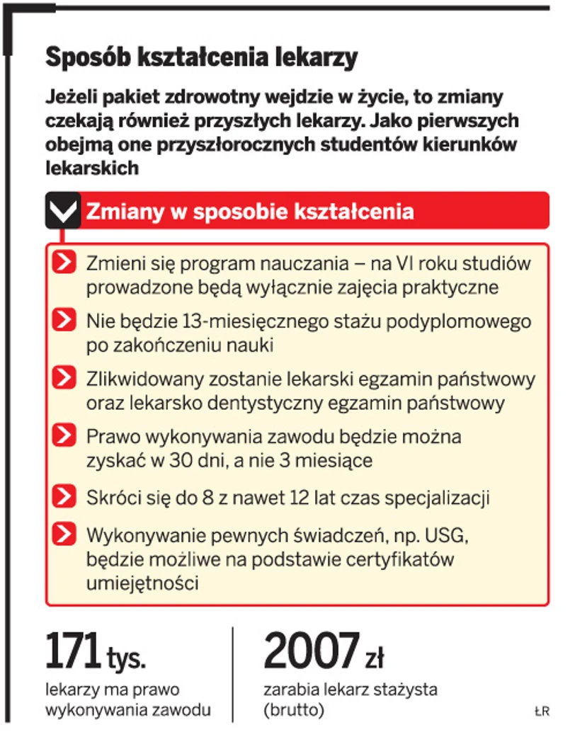 Pakiet ma trafić do Sejmu w ciągu miesiąca. Aby wszedł w życie posłowie będą musieli zakończyć prace nad nim do końca roku. Prace nad nim mogą być wyjątkowo trudne, bo swoje pomysły, często odmienne, na reformowanie systemu lecznictwa ma zarówno opozycja, jak i koalicjant rządu.