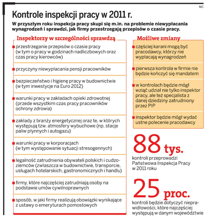 W ubiegłym roku Państwowa Inspekcja Pracy przeprowadziła kilkadziesiąt tysięcy kontroli. Na czym inspektorzy pracy skupią się w 2011 r.?