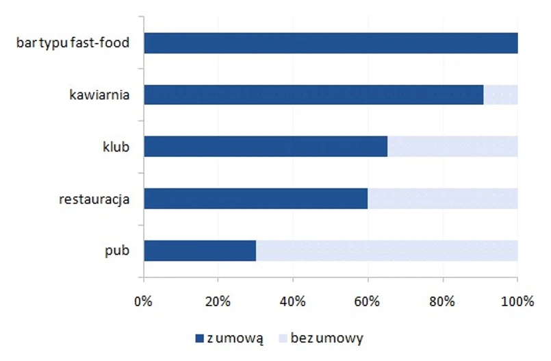 Niechęć do podpisywania formalnych zobowiązań nie zawsze jest domeną pracodawcy. Ponad połowa zatrudnionych w szarej strefie jest zadowolona z braku umowy i nie chciałaby tego zmieniać. Jako główny powód osoby te podają brak zobowiązań i możliwość zmiany pracy w każdej chwili. Większość pracowników gastronomii stanowią studenci, dla których jest to praca dorywcza. W związku z tym ważniejsza od formalnej umowy jest możliwość szybkiego jej porzucenia.