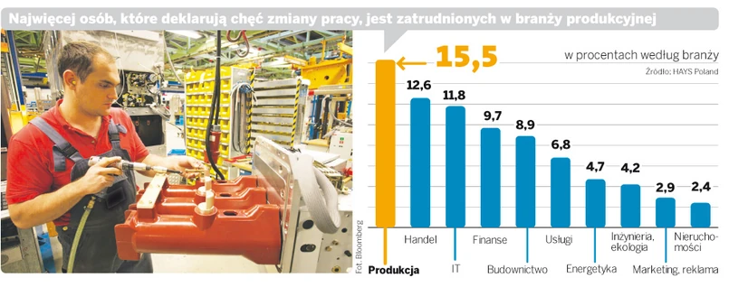 Najaktywniej nowej posady będą poszukiwać osoby zatrudnione w branży produkcyjnej. Blisko 16 proc. pracowników z tego segmentu chce zmienić pracę. Na drugim miejscu jest handel i sprzedaż – ok. 13 proc., a na trzecim IT – ok. 12 proc.