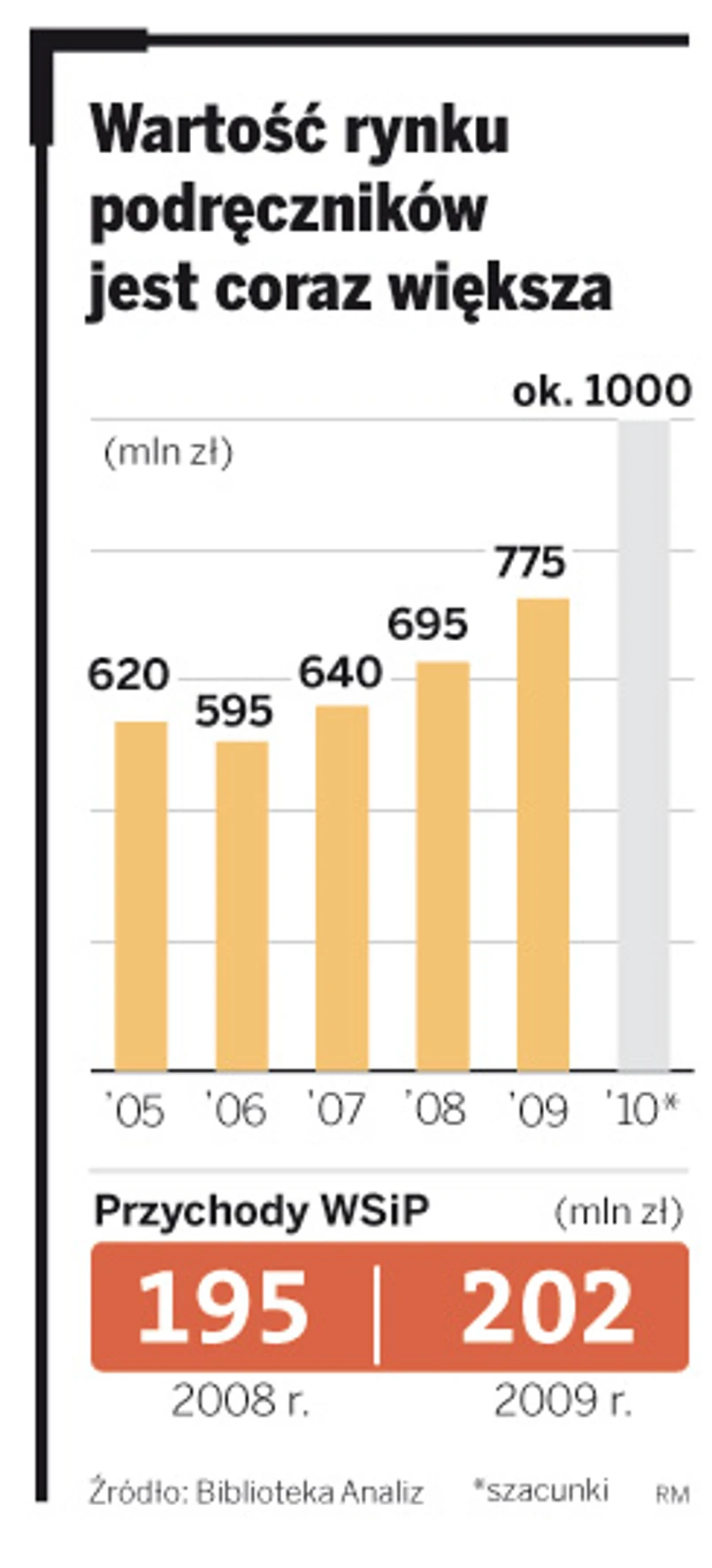 Tymczasem biznes wydawców podręczników ma się świetnie. Od 2006 roku ich obroty wzrosły o blisko 40 proc., choć zdaniem samych zainteresowanych o niczym to nie świadczy. – Podręcznik kosztuje średnio 30 zł, a powieść o Harrym Potterze 50 zł. A przecież koszt wydania podręcznika nie jest niższy niż beletrystyki – przekonuje Piotr Marciszuk, prezes PIK i szef wydawnictwa Stentor. I dodaje, że gdyby wydatek na komplet książek podzielić na 12 miesięcy, wyszłoby po kilkadziesiąt zł. – A to inwestycja w wykształcenie dziecka – mówi Marciszuk. A Marek Pleśniar z Ogólnopolskiego Stowarzyszenia Kadry Kierowniczej Oświaty ripostuje, że coraz częściej rodzice muszą brać na podręczniki kredyt.