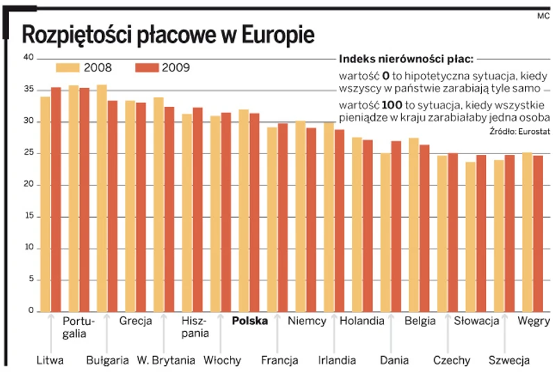 Podobne zjawisko dużego wzrostu rozpiętości wynagrodzeń, a potem jego spadku miało miejsce we wszystkich krajach Europy Środkowo-Wschodniej, m.in. w Słowenii, Czechach, na Słowacji i Węgrzech. I choć daleko nam jeszcze do krajów skandynawskich, gdzie współczynnik Giniego wynosi 23 – 27, to jest szansa, że z czasem rozpiętości te będą się zmniejszać.