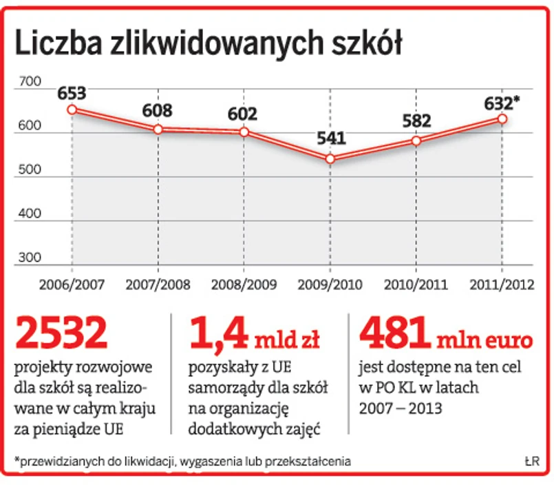 Jest tajemnicą poliszynela, że część dyrektorów szkół pisała unijne projekty, licząc, że uchroni to ich placówki od likwidacji. Okazało się jednak, że nawet korzystanie z dotacji nie chroni szkół.