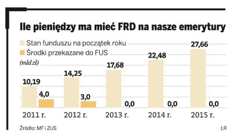 W ubiegłym roku rząd zabrał z FRD 7,5 mld zł, w tym będzie to 4 mld zł, a w przyszłym – jak wynika z projektu ustawy budżetowej – 3 mld zł. W efekcie fundusz, którym zarządza ZUS, wciąż jest fikcyjnym zabezpieczenim wypłat naszych emerytur.