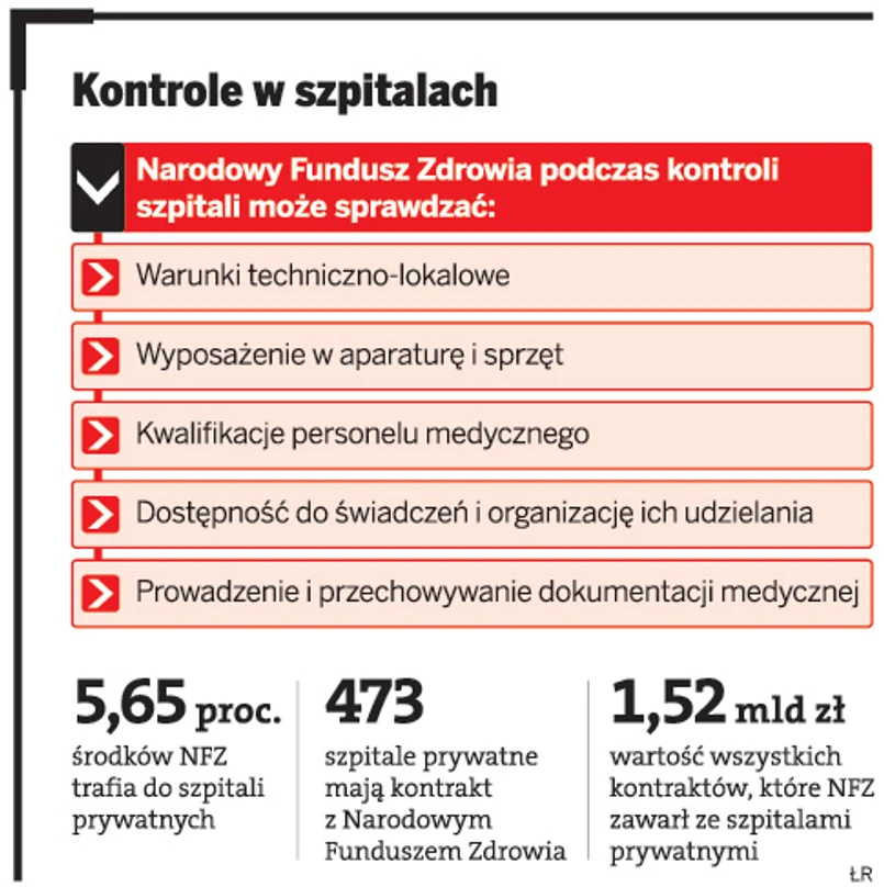 Ustawa o działalności leczniczej, która wejdzie w życie 1 lipca (czeka na publikację), zrównuje w prawach i obowiązkach publiczne i niepubliczne szpitale. Wszystkie będą traktowane jednakowo jako tzw. podmioty wykonujące działalność leczniczą. Dla prywatnych placówek medycznych oprócz większych przywilejów, np. równego traktowania z publicznymi placówkami w rywalizacji o kontrakty z NFZ, oznacza to poważne konsekwencje. Ustawa zwiększa bowiem uprawnienia kontrolne i nadzorcze ministra zdrowia. Po wejściu jej w życie będzie on mógł dokonywać bardzo szczegółowych kontroli w każdym szpitalu, także prywatnym. Może je zlecić także wojewodom lub konsultantom krajowym.