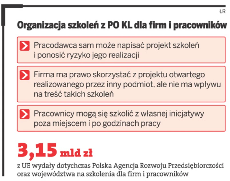 Małe i średnie firmy, które utworzą fundusz szkoleniowy, będą mogły otrzymać dodatkowe środki z Programu Operacyjnego Kapitał Ludzki. Taka propozycja została zaakceptowana przez Komitet Monitorujący PO KL, który obradował w Rzeszowie. Mogłaby wejść w życie jako rozwiązanie pilotażowe w PO KL od 2012 roku, ale wcześniej muszą zgodzić się na nie Rada Ministrów i Komisja Europejska.