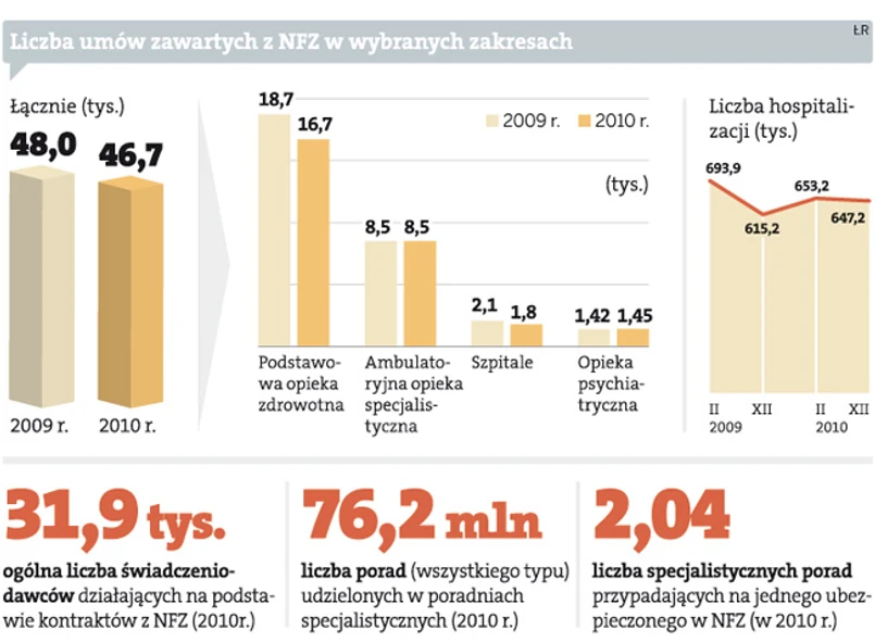 NFZ podsumował swoje wydatki na leczenie za ubiegły rok. Okazuje się, że świadczenia zdrowotne kosztowały o 517 mln zł mniej, niż pierwotnie zapisano to w planie finansowym funduszu. Łącznie na leczenie ten wydał 56,6 mld zł, choć wcześniej wydatki zaplanowano na poziomie 57,1 mld zł. Tradycyjnie najwyższe koszty generowały świadczenia z zakresu leczenia szpitalnego. W ostatecznym rozrachunku na hospitalizacje, zabiegi, operacje i badania NFZ wydał 24,2 mld zł. Polacy najczęściej korzystali z tych świadczeń w szpitalach powiatowych i wojewódzkich. Rzadziej trafiali do klinik i placówek niepublicznych.