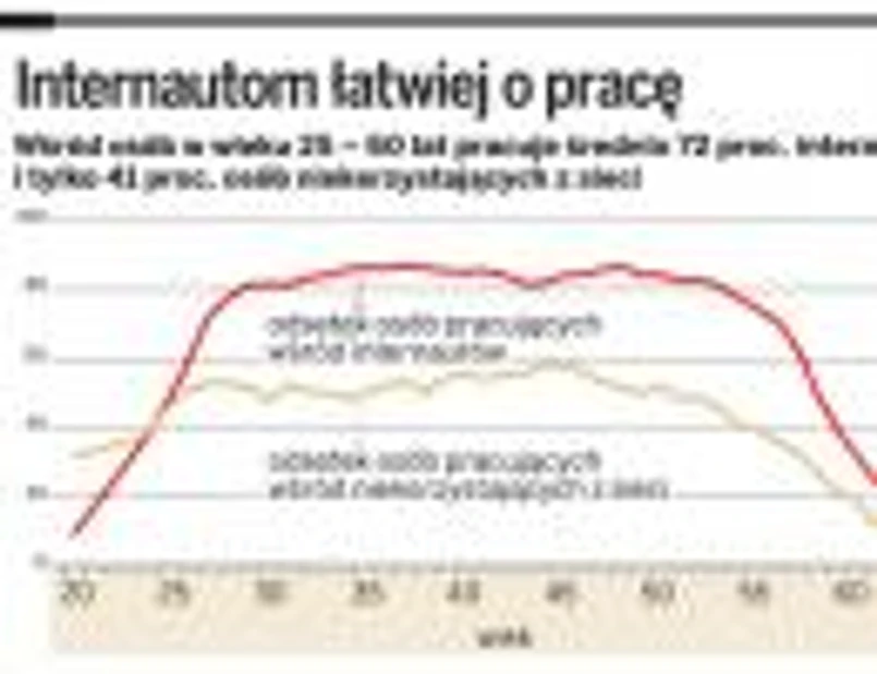 Ale też trudno dziś znaleźć jakąkolwiek pracę, nie korzystając z wirtualnej przestrzeni – ponad połowa dorosłych internautów w Polsce szukała zajęcia bądź wysyłała oferty dotyczące zatrudnienia przez internet. – Już wielu pracodawców tylko w sieci prowadzi nabór, a więc niekorzystający z niej są z tych możliwości wyłączeni – tłumaczy dr Dominik Batorski, autor badania.