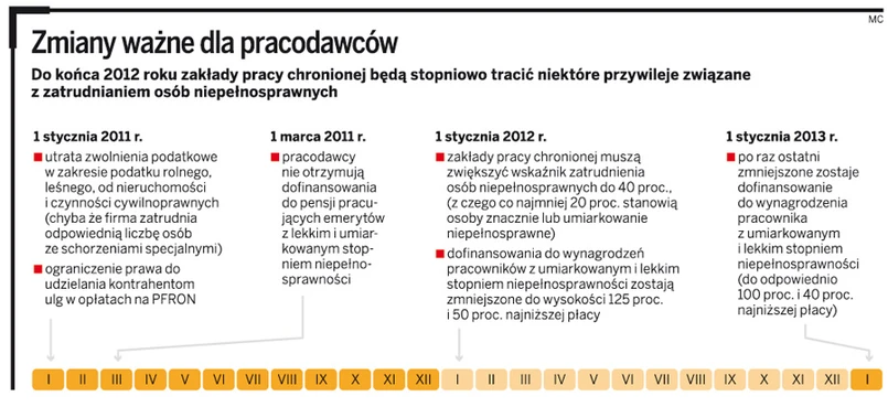 Jan Zając, prezes Polskiej Organizacji Pracodawców Osób Niepełnosprawnych, zwraca uwagę, że przyszły rok przyniesie jeszcze większy spadek liczby ZPChr. Od 2012 roku zaczną obowiązywać kolejne zmiany, w tym zmniejszenie dopłat do pensji niepełnosprawnych z umiarkowanym i lekkim stopniem niepełnosprawności.