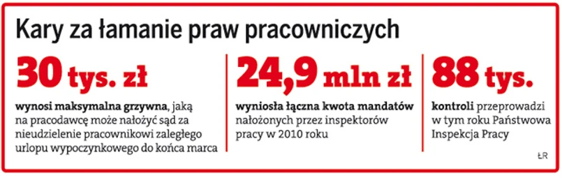 Ani pracodawcy, ani pracownicy nadal nie przywiązują wagi do obowiązku udzielania zaległego wypoczynku w pierwszym kwartale następnego roku. Choć za złamanie tego przepisu firmie grozi grzywna od 1 tys. zł nawet do 30 tys. zł, co roku urlopu nie wykorzystuje co najmniej kilkadziesiąt osób.