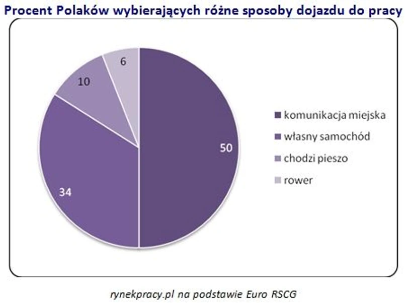 Tylko trochę mniej, bo 34 proc. badanych decyduje się na własny samochód. Pozostali preferują bardziej ekonomiczne opcje. 10 proc. z nas chodzi do pracy pieszo, a 6 proc. wybiera rower.