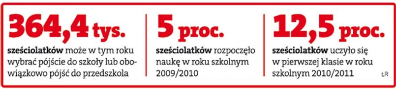 W kilkunastu sprawdzonych przez nas samorządach z całej Polski liczba rozpoczynających naukę sześciolatków podwoi się w porównaniu z ubiegłym rokiem. W Opolu do pierwszych klas zapisanych jest już 240 dzieci. Rok temu było ich tylko 100. W Radomiu do podstawówek trafi co najmniej 231 sześciolatków. W 2010 roku było ich zaledwie 90. W Gdyni do pierwszych klas zapisało się już ponad tysiąc sześcioletnich dzieci. To połowa całego rocznika.