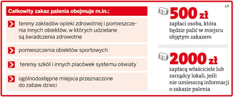 Efektu nie przynosi nawet zakazywanie sprzedaży papierosów na terenie szpitala, bo nałogowych palaczy zaopatrują rodziny. Działania szpitali sprowadzają się więc do umieszczania na budynkach i w pomieszczeniach znaków graficznych informujących o zakazie.