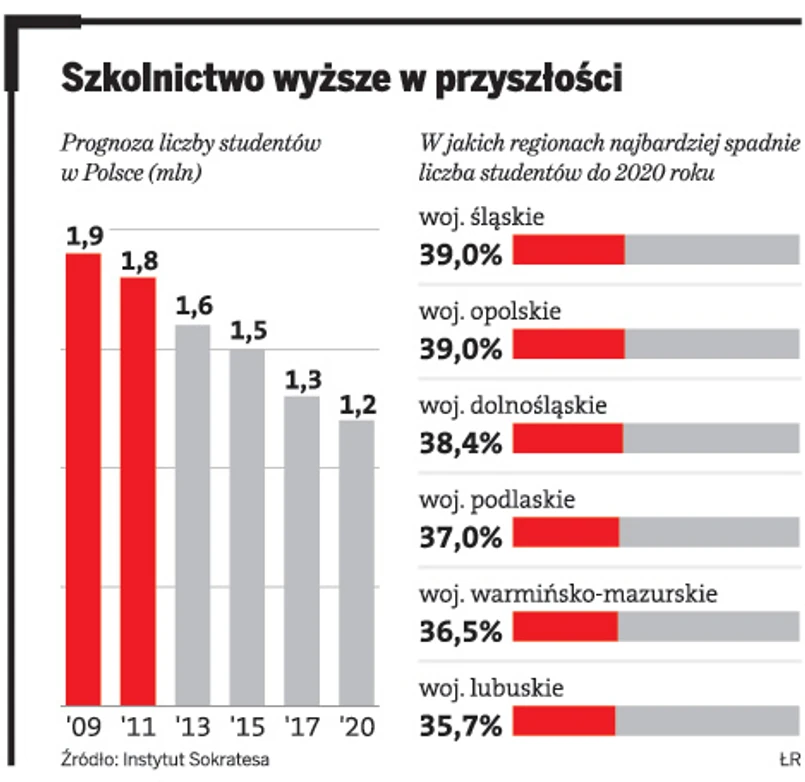 W Polsce funkcjonuje ponad 460 szkół wyższych i powstają kolejne. Dzieje się tak mimo ostrzeżeń demografów, którzy twierdzą, że w efekcie niżu liczba studentów w najbliższym okresie spadanie o 30 proc. To natomiast przełoży się na mniejsze dochody szkół wyższych.
