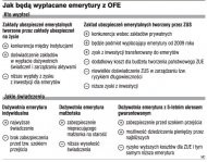 Przyszli emeryci zdecydują, czy za pieniądze z OFE kupić emeryturę indywidualną, małżeńską czy z gwarantowanym okres wypłat (na pięć lat). Pierwsza będzie najwyższa, bo ZUE będzie kalkulować najmniej ryzyk. Będzie dożywotnim świadczeniem, wyliczonym na podstawie zgromadzonego kapitału i statystycznej długości dalszego trwania życia emeryta. Emerytura małżeńska ma być wypłacana do momentu śmierci obojga małżonków, z tym że po śmierci ubezpieczonego zostanie zmniejszona. Wyniesie wtedy 60 proc. dotychczasowego świadczenia. Natomiast emerytura gwarantowana ma być dożywotnim świadczeniem, ale jeśli ubezpieczony umrze przed upływem pięciu lat od momentu przejścia na emeryturę, do końca tego okresu świadczenie otrzymywać będą wskazane prze niego osoby.