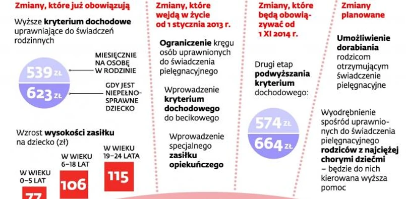 Takie zmiany nie oznaczają jednak, że pozostali obecnie uprawnieni, jak np. córka zajmująca się niepełnosprawną matką, ojcem lub obojgiem z nich, w ogóle zostaną pozbawieni jakiejkolwiek pomocy.