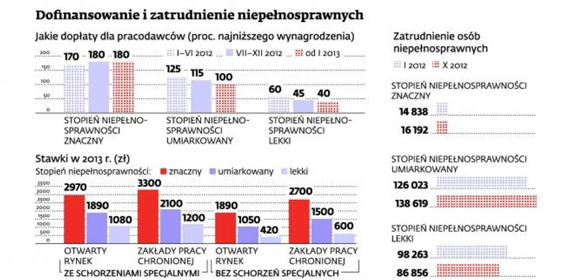 Jak podkreślają pracodawcy, warunki zatrudnienia osób niepełnosprawnych są dużo bardziej korzystne niż kilka lat temu. – Dawniej pojawiał się kłopot, gdy taka osoba została zwolniona lub sama odeszła z pracy. Trzeba było szybko znaleźć zastępstwo, bo dofinansowanie przepadało. To zaburzało pracę w firmie. Dziś takiego pośpiechu już nie ma – tłumaczy właściciel szwalni spod Łodzi. Dodaje, że zatrudnienie osób niepełnosprawnych można obecnie poprzedzić zaoferowaniem im stażu. Gdy przejdą go pomyślnie, dopiero wówczas można podpisać z nimi umowę o pracę.