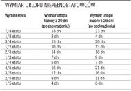 - za dziewięć pozostałych miesięcy pracownik będzie miał prawo do sześciu dni urlopu (1/4 z 26 dni to 6,5, czyli po zaokrągleniu 7 dni; 7 : 12 = 0,58; 0,58 x 9 = 5,22, czyli po zaokrągleniu 6).