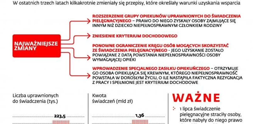 Rząd od lipca zafundował 100 tys. osób jazdę bez trzymanki i pozbawił je świadczenia pielęgnacyjnego. Teraz próbuje z ewidentnej wpadki wyjść z twarzą. Zapowiada więc zmianę przepisów. DGP dowiedział się, że resort pracy przygotowuje projekt, który zakłada, że wszyscy niepracujący opiekunowie niepełnosprawnych członków rodziny będą mogli ponownie ubiegać się o świadczenie pielęgnacyjne. To nie koniec nowości.