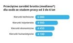 Wśród osób zarabiających przeciętnie powyżej 3 500 brutto na początku kariery zawodowej znajdują się absolwenci kierunków mechatronika, mechanika i budowa maszyn, matematyka oraz elektrotechnika. Także przeciętne zarobki specjalistów ds. finansów i rachunkowości przekraczające omawianą kwotę.