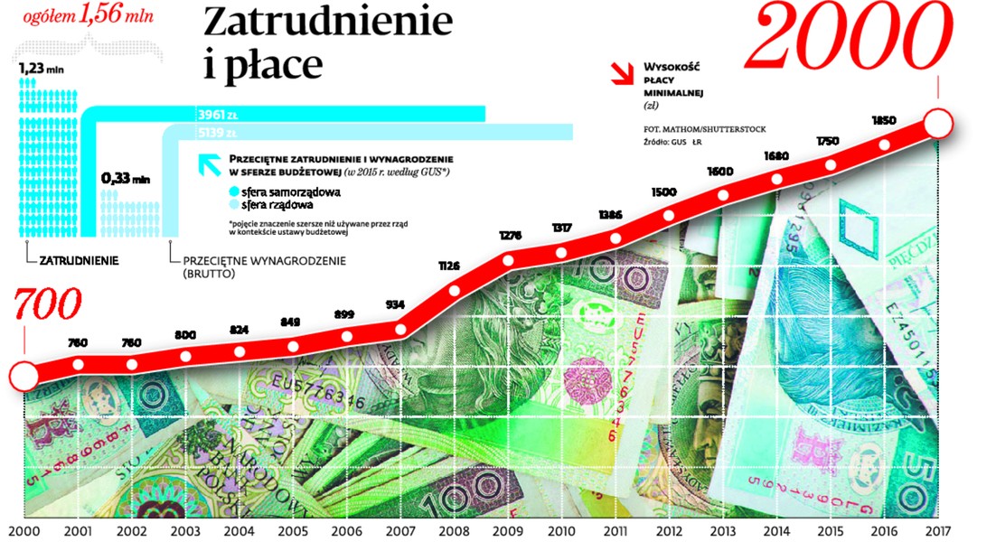 Poprawi się też w budżetówce. Dostanie ona dodatkowe pieniądze drugi rok z rzędu. PiS nie wprowadzając powszechnych procentowych podwyżek, powiela rozwiązanie z 2015 r. rządu PO-PSL, który zdecydował o przeznaczeniu na wzrost płac 2 mld zł, nie narzucając wskaźnika wzrostu wynagrodzeń. Wcześniej jednak przez wiele lat urzędnicze wynagrodzenia były zamrożone. Poprzednie rządy nie podnosiły pensji od 2008 r., głównie ze względu na napiętą sytuację w budżecie, a system uszczelniono jeszcze bardziej w 2010 r. Na krótką metę zwiększało te efektywność administracji. Skoro fundusz płac był zamrożony, jedyną metodą na podwyżki było wykorzystanie pieniędzy z wakatów wynikających np. z odejść na emerytury. Czyli podwyżki były możliwe tam, gdzie ubywało pracowników, a praca była rozdzielana między pozostałych. Ale miało to swoje złe skutki. Ekonomiści zwracali uwagę, że trwające tak długo zamrożenie płac oznacza demotywację pracowników, ogranicza ich rozwój, sprowadza się do drenażu mózgów z sektora publicznego i ucieczki najlepszych do sektora prywatnego. Od 2008 r. do 2015 wynagrodzenia w gospodarce narodowej wzrosły nominalnie o prawie 23 proc.