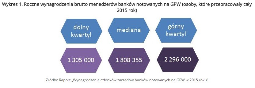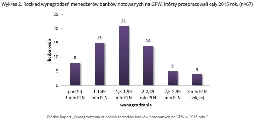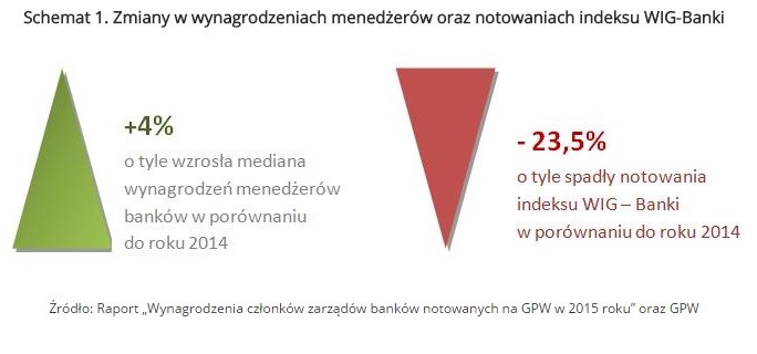 Z przeprowadzonego badania wynagrodzeń członków zarządów banków notowanych na GPW w 2015 roku wynika, iż powyższe wydarzenia nie wpłynęły w znaczący sposób na wynagrodzenia top menedżerów. Mediana rocznych wynagrodzeń wypłaconych członkom zarządów banków notowanych na GPW wyniosła 1 808 355 PLN. W porównaniu do 2014 roku ich wynagrodzenia wzrosły o 4 proc. Połowa menedżerów otrzymała pensje w przedziale od 1 305 000 PLN do 2 296 000 PLN.