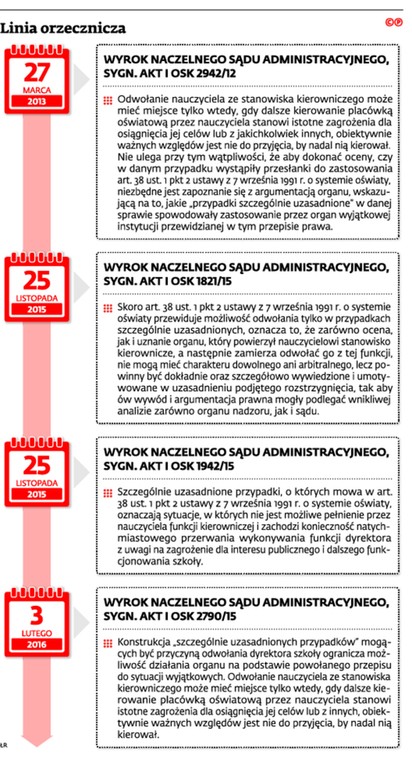 Burmistrz D. zarządzeniem wydanym na podstawie art. 38 ust. 1 pkt 2 ustawy z 7 września 1991 r. o systemie oświaty (t.j. Dz.U. z 2015 r. poz. 2156 ze zm.; dalej: u.s.o.) odwołał U.K. ze stanowiska dyrektora Zespołu Placówek Oświatowych w D. W uzasadnieniu rozstrzygnięcia organ wskazał m.in., że dalsze wykonywanie funkcji przez U.K. godziłoby w interes szkoły i powodowało destabilizację w jej funkcjonowaniu w zakresie zadań dydaktycznych, wychowawczych i opiekuńczych, co stanowi rażące naruszenie interesu publicznego.