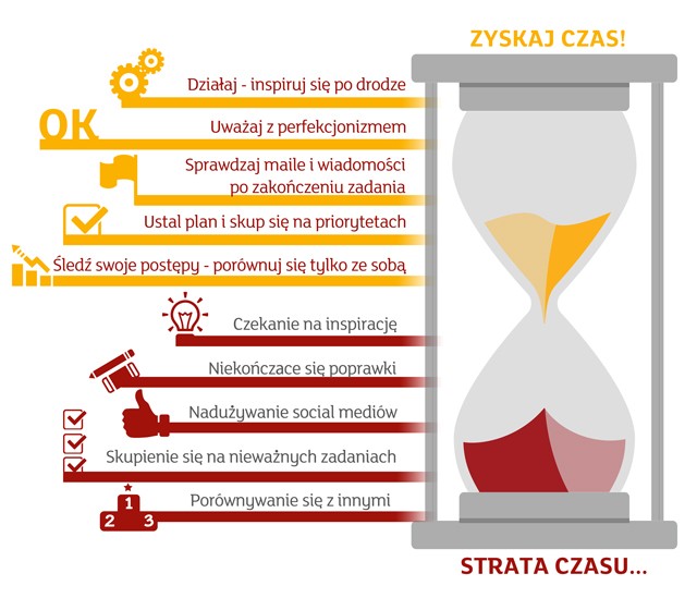 Czasem, a właściwie sobą w czasie możemy jednak nauczyć się zarządzać. Jest to zadanie niełatwe i wymagające żelaznej konsekwencji w działaniu, ale bez dwóch zdań warte wysiłku. Zaowocuje bowiem nie tylko zwiększeniem naszej efektywności zawodowej, ale również (a może nawet przede wszystkim) pozwoli bez dodatkowego stresu znaleźć codziennie czas na inwestowanie w siebie i własny rozwój. Umożliwi także spędzanie części każdego dnia z najbliższymi osobami bez uszczerbku dla innych aktywności (w tym pracy).