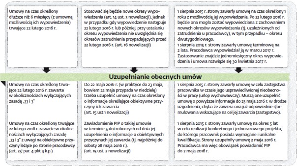 Od dnia wejścia w życie nowelizacji dotychczasowa umowa na czas wykonania określonej pracy funkcjonować więc będzie nadal jako jeden z podtypów umowy terminowej, a nie jako samodzielny rodzaj kontraktu.