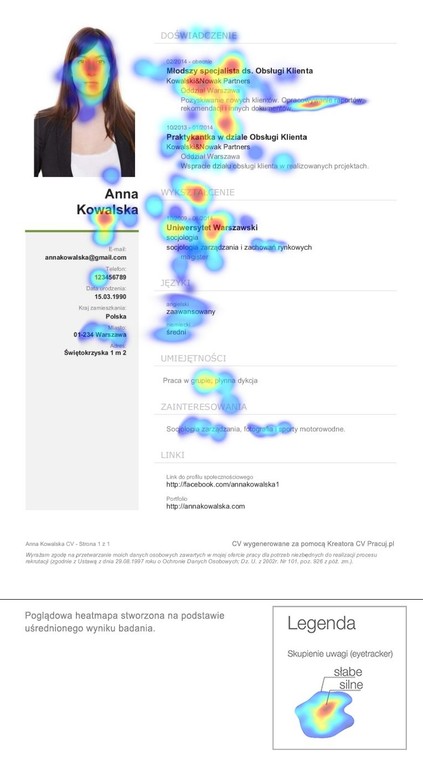 Wyniki badania eyetrackingowego CV przeprowadzono wśród rekruterów w ramach kampanii Pracuj.pl „Kreator mocnych stron”
