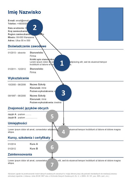 Wyniki badania pokazały, że rekruterzy rozpoczynają analizę CV od informacji o doświadczeniu zawodowym. Wzrok 45% badanych w pierwszej kolejności został skierowany na ten obszar dokumentu. Najwięcej ich uwagi pochłaniały trzy najnowsze pozycje doświadczenia. Potwierdziło to zasadę, że w tej sekcji warto stosować chronologię odwróconą i na początku wymieniać najświeższe doświadczenia. Drugim obszarem, na który padał wzrok rekrutera, były dane osobowe. Kolejną przyciągającą uwagę była sekcja wykształcenie.