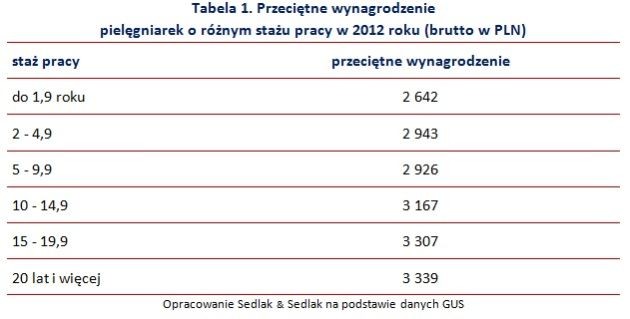 Jak wynika z odpowiedzi sekretarza stanu w Ministerstwie Zdrowia na interpelację dotyczącą zarobków pielęgniarek i położnych , wysokość wynagrodzeń tych grup zawodowych ustalana jest przez pracodawcę. W Polsce większość pielęgniarek zatrudnionych jest w podmiotach leczniczych, a więc za ustalenie stawek ich wynagrodzeń są odpowiedzialni kierownicy tych podmiotów. Warto zaznaczyć, że poziom pensji pielęgniarek zależy w dużej mierze od kondycji finansowej tych jednostek, dostępnych środków finansowych, a także sytuacji na lokalnym rynku pracy. Najaktualniejsze dane GUS wskazują, że przeciętne zarobki pielęgniarek wyniosły w 2012 roku 3 277 PLN brutto. Oznacza to wzrost w porównaniu z 2008 rokiem o ponad 370 PLN.