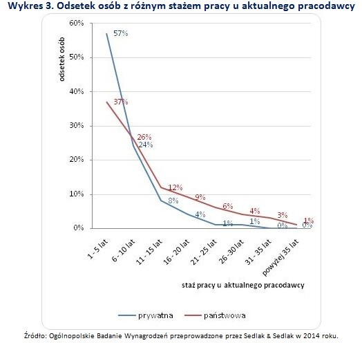 Zgodnie z wynikami Ogólnopolskiego Badania Wynagrodzeń, osoby które znalazły pracę w sektorze państwowym, rzadziej ją zmieniają.
