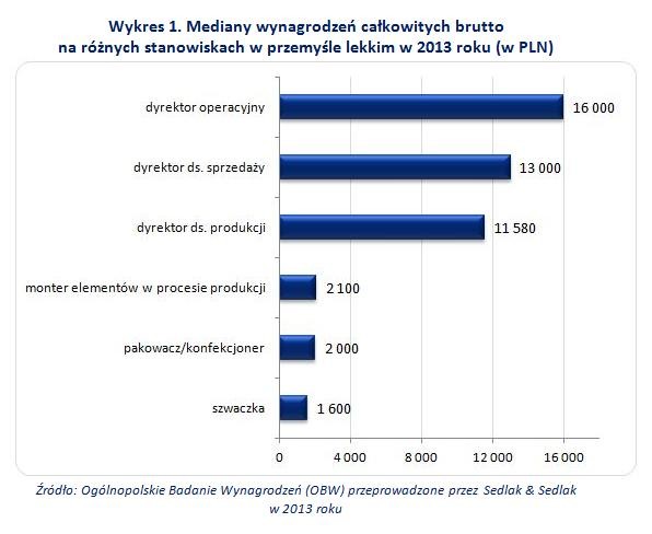 Interesująco wypada porównanie płac na wybranych poszczególnych stanowiskach w branży. I tak: dyrektor operacyjny miesięcznie zarabiał nawet 16 000 PLN brutto miesięcznie, dyrektor ds. sprzedaży – 13 000 PLN, natomiast monter 2 100 PLN a szwaczka 1 600 PLN brutto miesięcznie, czyli tyle ile wynosiła w 2013 roku ustawowa pensja minimalna.