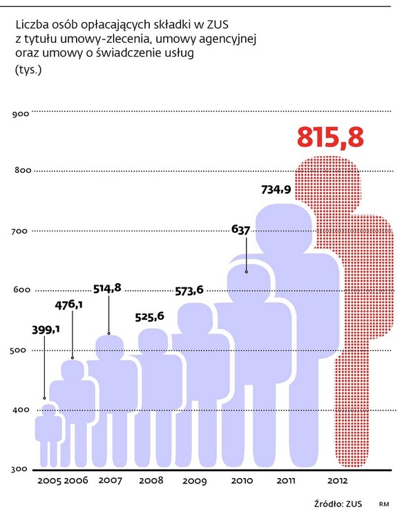 Umów śmieciowych, na które coraz częściej muszą decydować się pracownicy, przybywa w ekspresowym tempie. Jak wynika z najnowszych danych GUS, w 2012 r. pracowało na ich podstawie ponad milion osób w firmach zatrudniających ponad 9 osób (umowy o dzieło i zlecenia). Ten milion nie dysponował przy tym żadną inną formą zatrudnienia. W stosunku do 2010 r. mamy do czynienia ze wzrostem aż 85-proc.