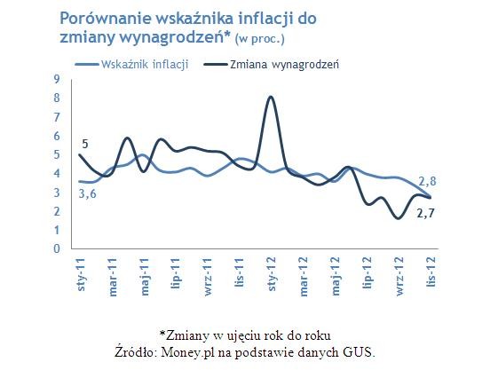 Ekonomiści podkreślają, że sytuacja wyglądałaby jeszcze gorzej, gdyby nie to, że na początku 2012 roku GUS pokazywał dość wyraźny wzrost wynagrodzeń, co ma wpływ na całoroczną średnią.