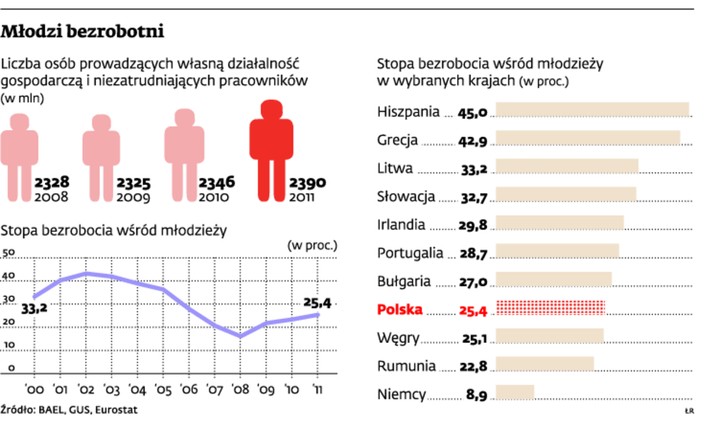 W niewiele lepszej sytuacji są absolwenci szkół zawodowych. Wprawdzie zapotrzebowanie na nich jest duże, ale firmy, obawiając się spowolnienia gospodarczego, nie chcą zatrudniać ich na umowy cywilno-prawne. Wolą korzystać z agencji pracy tymczasowej, która dostarcza im robotników wtedy, gdy dostają większe zamówienia i muszą zwiększyć produkcję. To właśnie dlatego, aż 40 proc. wszystkich zarejestrowanych w agencjach pracy tymczasowej stanowią ludzie młodzi – poniżej 25. roku życia.
