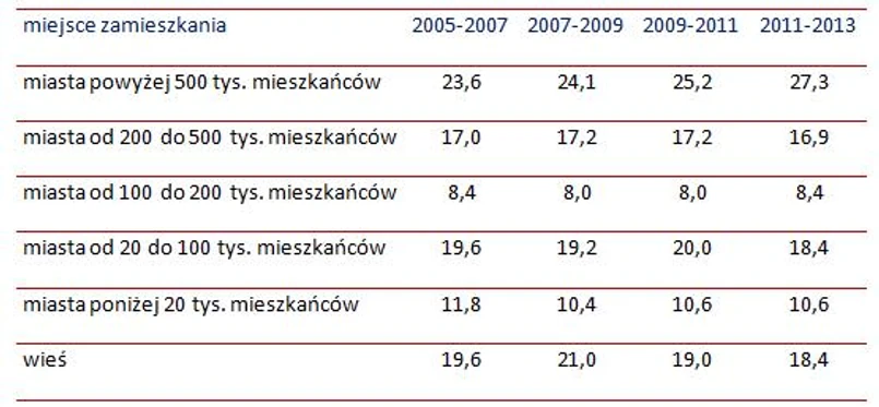 Warto również zauważyć, że mieszkańcy miast liczących od 100 do 200 tysięcy mieszkańców uczestniczyli w różnych formach podnoszenia kwalifikacji rzadziej niż mieszkańcy małych miast i wsi.