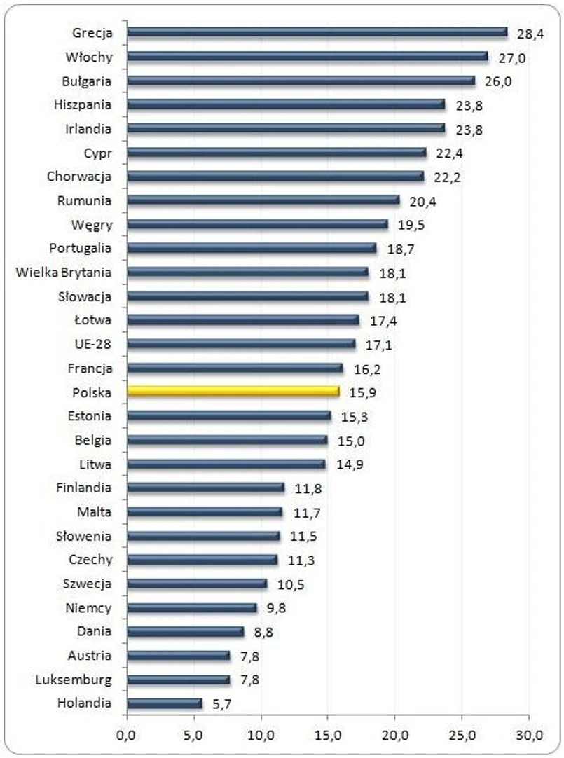 Najmniej biernych społecznie osób było w Holandii, Luksemburgu i Austrii, gdzie odsetek ten znalazł się w przedziale od 6 do 8%. W Polsce w 2012 roku niemal 16% młodych zasiliło grupę NEETs.