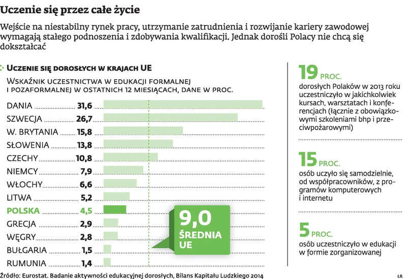 – W Polsce nie ma zapotrzebowania na szkolenia, nawet te unijne, a więc bezpłatne. Pracodawcy liczą koszty pracy, czyli wynagrodzenie pracownika za nieobecność w firmie podczas szkolenia. I ta sytuacja się nie zmieni, dopóki nasza gospodarka nie będzie miała charakteru innowacyjnego. Nie wprowadzamy szybkich zmian w technologiach i pracodawca nie widzi potrzeby dokształcania pracowników – wskazuje Zenon Wiśniewski.