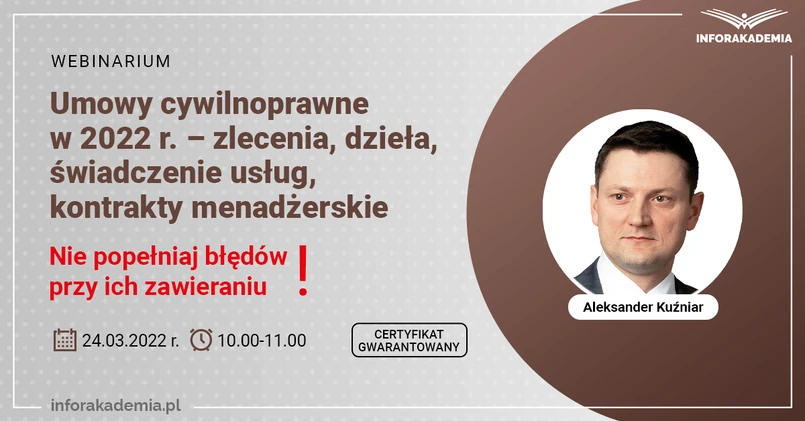 Zapisz się >> https://sklep.infor.pl/webinarium-umowy-zlecenia-umowy-cywilnoprawne-2022.html