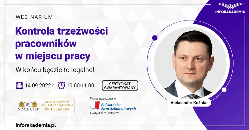 „Kontrola trzeźwości pracowników w miejscu pracy” + certyfikat gwarantowany