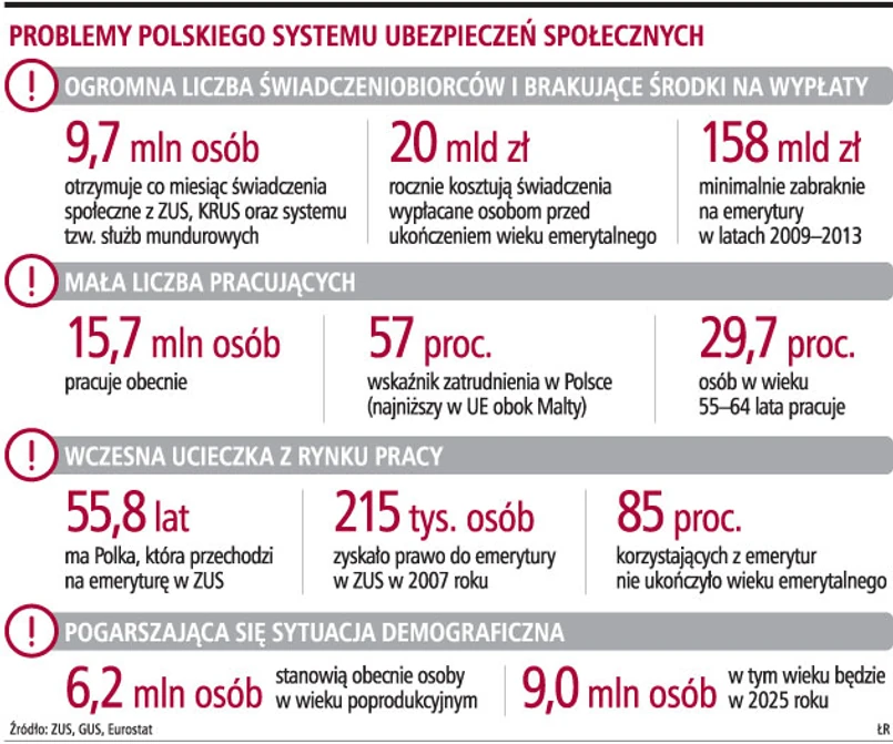 Projekt ustawy o emeryturach pomostowych, który jest w Sejmie daje prawo do wcześniejszego przechodzenia na emeryturę około 250 tys. osób. To stanowczo za dużo. System emerytur pomostowych powinien być przejściowy i oparty na kryteriach zdrowotnych. Skutkiem utrzymywania dużej grupy uprawnionych do wcześniejszych emerytur będzie zwiększenie kosztów pracy, a tym samym spowolnienie rozwoju gospodarczego. Jeśli ustawa nie wejdzie w życie od 1 stycznia zapłacimy ogromne koszty przedłużania złych rozwiązań. Wszyscy pracujący będą musieli zapłacić za wcześniejsze emerytury. W praktyce to oznacza ich niższe dochody netto.