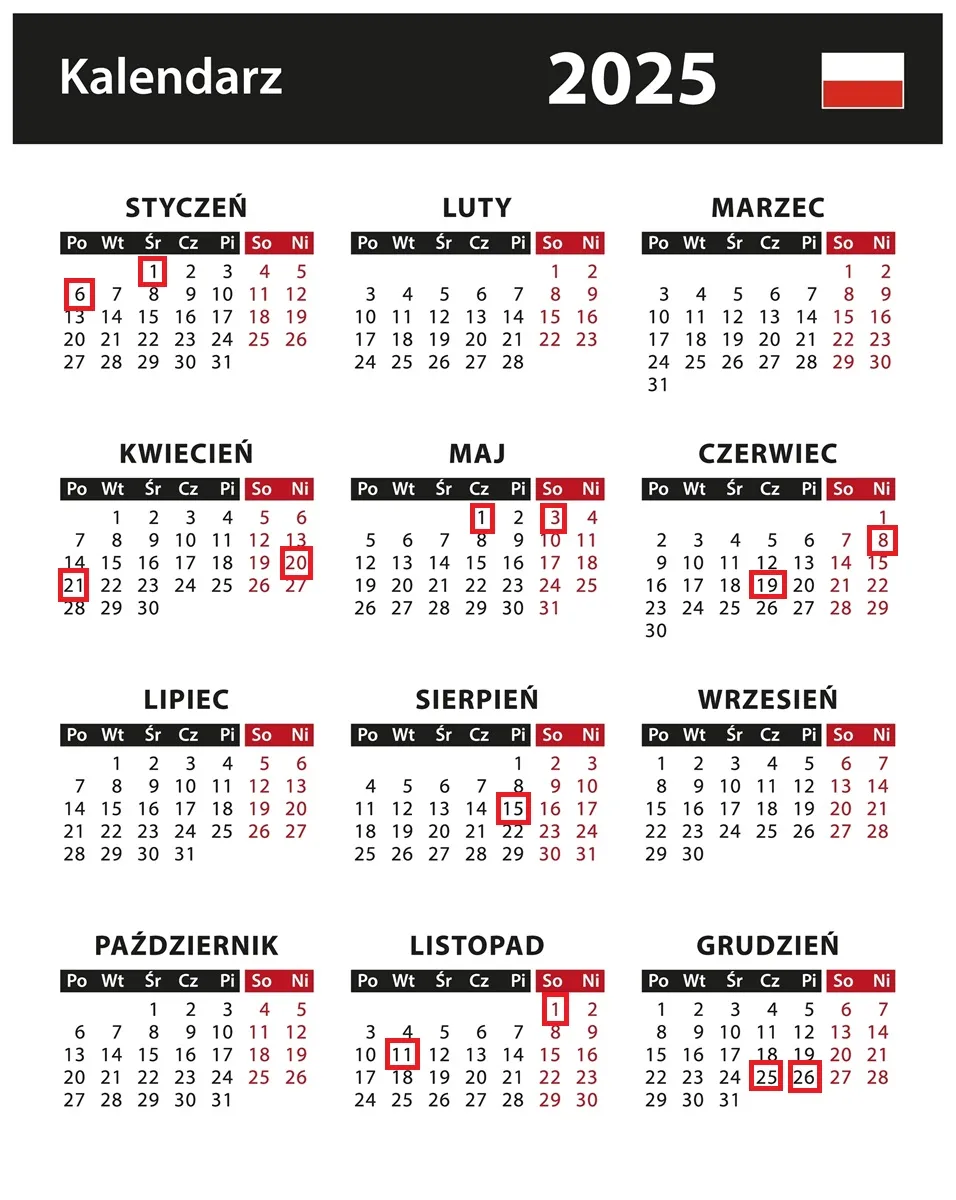 Dni wolne od pracy 2025 - kalendarz