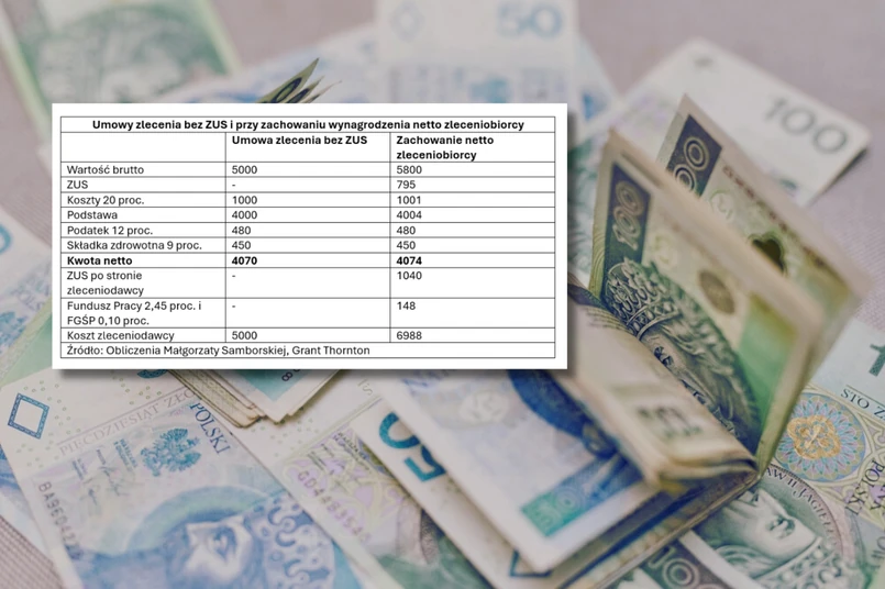 | Umowy zlecenia bez ZUS i przy zachowaniu wynagrodzenia netto zleceniobiorcy | ||