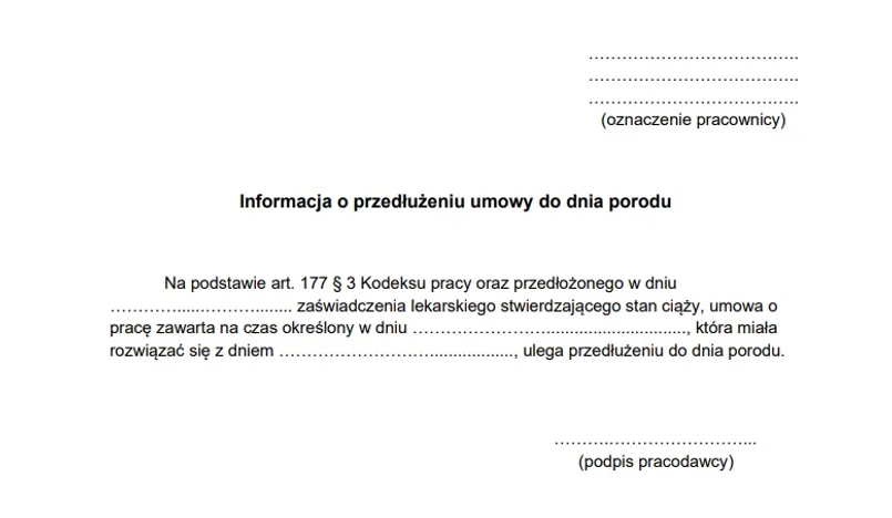Wzór przedłużenia umowy do dnia porodu
