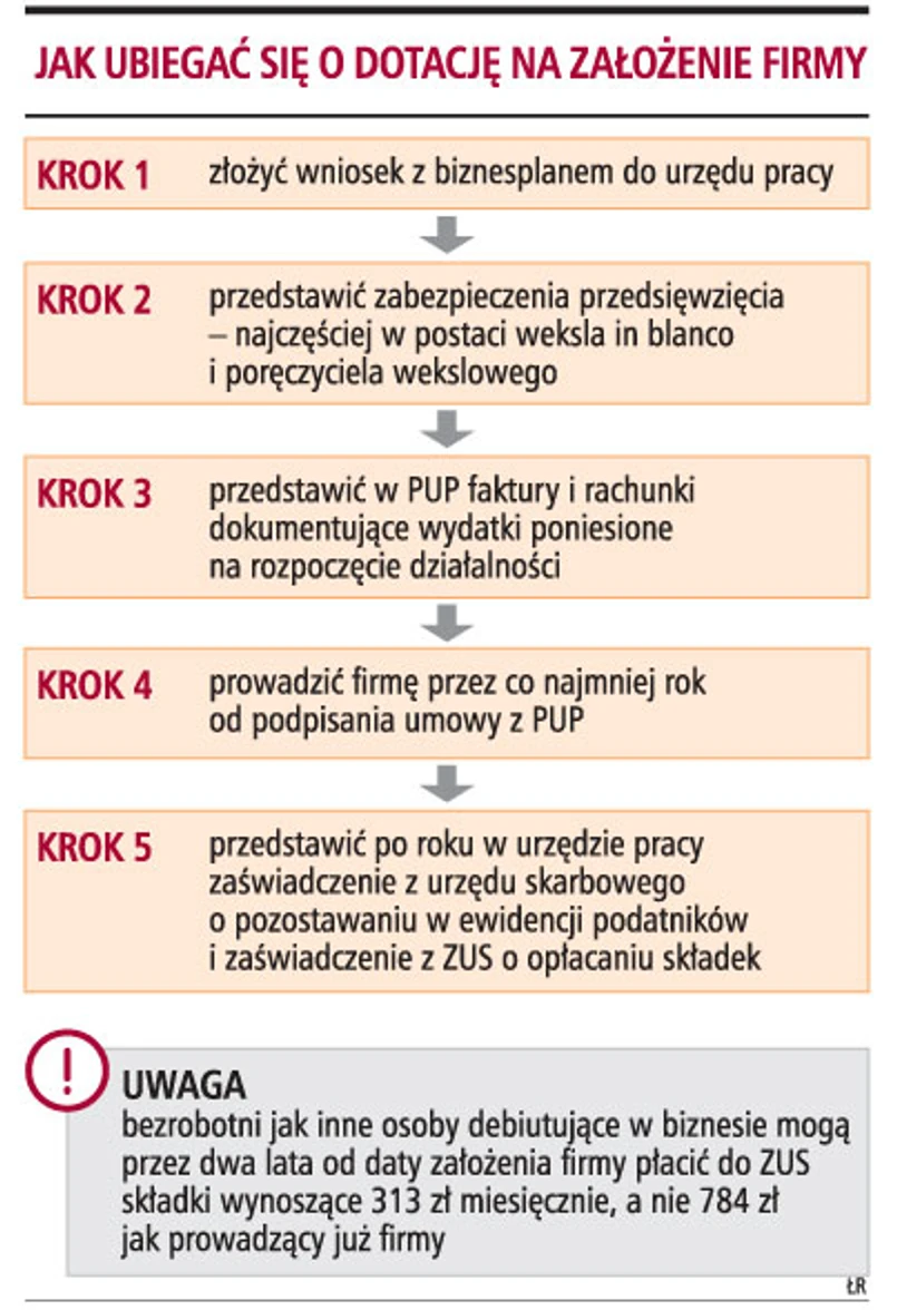 Bezrobotni mogą ubiegać się o dotację na rozpoczęcie działalności gospodarczej od 2004 roku. Wtedy weszła w życie ustawa z 20 kwietnia 2004 r. o promocji zatrudnienia i instytucjach rynku pracy (t.j. Dz.U. z 2008 r. nr 69, poz. 415 z późn. zm.). Wcześniej mogli starać się o nisko oprocentowane pożyczki na ten cel. Kwota dotacji wynosi od 2004 roku równowartość pięciokrotności przeciętnego