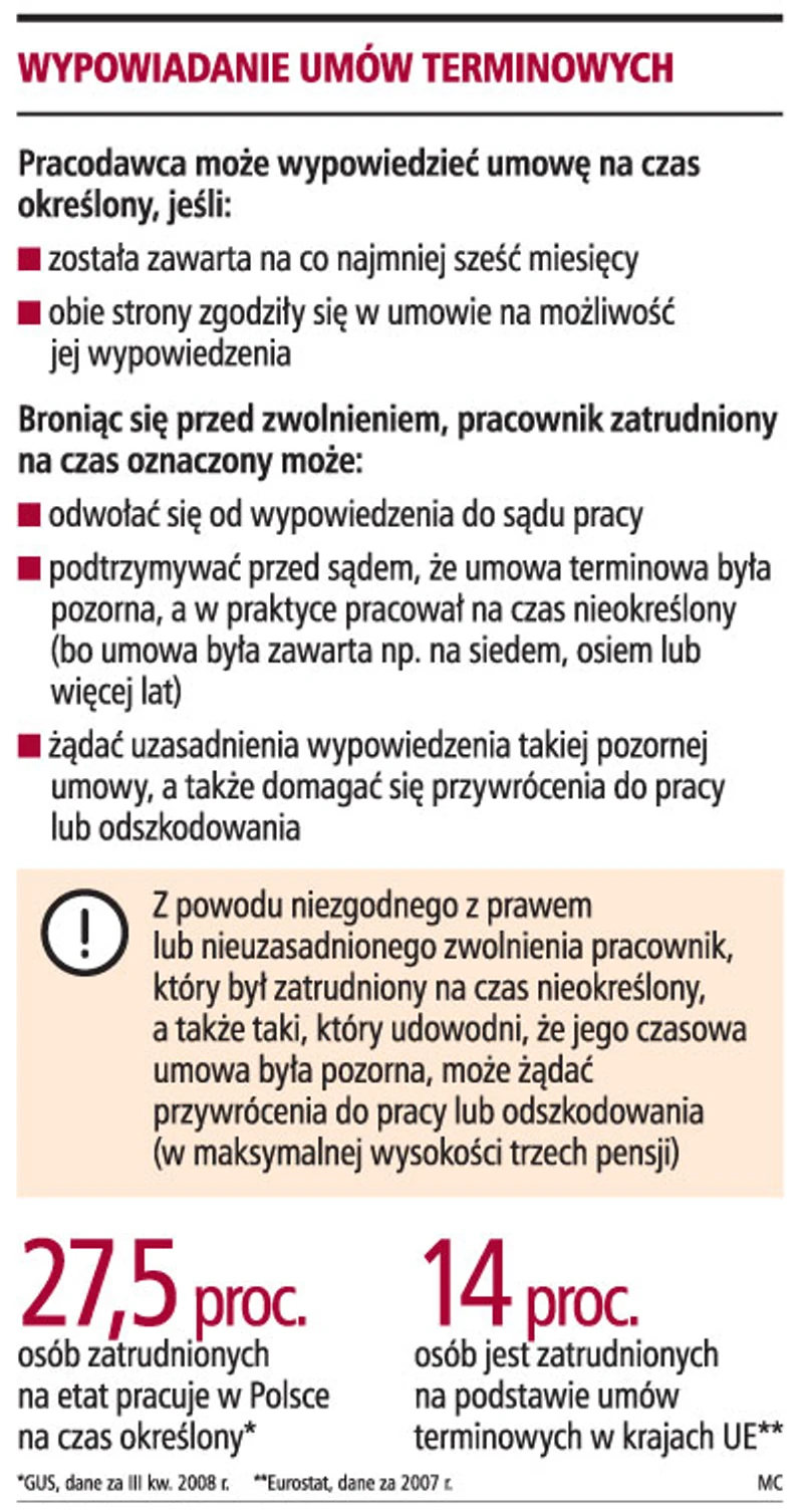 Sytuację te wykorzystują pracodawcy i zawierają z pracownikami umowy terminowe, np. na 10 lub nawet 20 lat, zamiast umów stałych. W Polsce na czas określony zatrudnionych jest blisko 3,4 mln osób. W całej UE częściej zawierają je jedynie Hiszpanie.